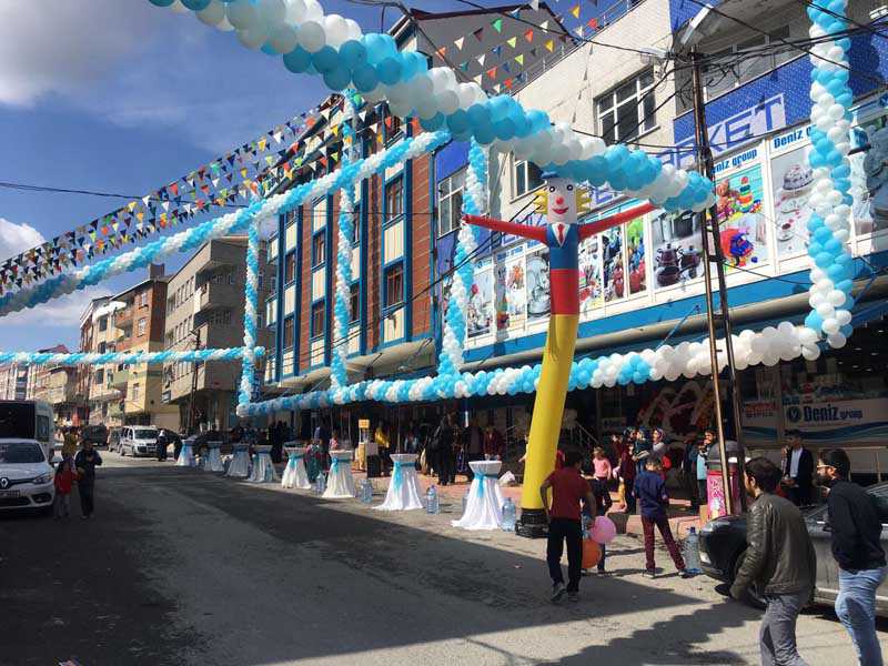 Müşterinin ilgisini çekebilmek için bayi açılışlarında, işyeri açılışlarında, market açılışları, kafe açılışları, mağaza açılışları, AVM açılışlarında birçok etkinlikler organize edilmektedir. Müşterilerin göz zevkine hitap edecek, satışı yapılan ürüne uygun süslemeler yapılması gerekmektedir. Süslemelerde balon, tül, gibi malzemeler ile harika süslemeler yapılmaktadır. Açılışlarda en dikkat çekici diğer bir unsur da animasyon gösterileri ve müzik sistemleridir.
